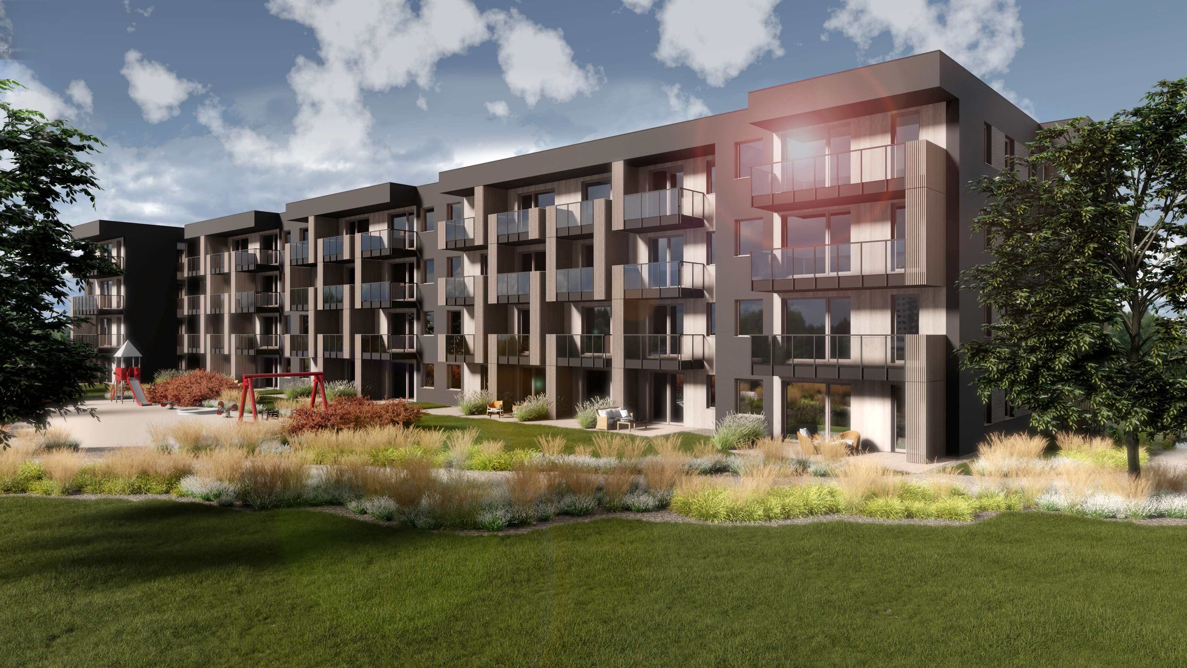 Przedsięwzięcie deweloperskie zostanie podzielone na 9 ETAPÓW w których przewidziano 9 budynków mieszkalnych wielorodzinnych oznaczonych numerami budowlanymi: B1, B2, B3, B4, B5, B6, B7, B8, B9 wraz z garażami podziemnymi jednokondygnacyjnymi oraz treny zielone, miejsca postojowe ogólnodostępne, ścieżkę naturalną – zwaną „deptakiem”, ogólnodostępne place zabaw oraz ciąg pieszo-jezdny wraz z małą architekturą (śmietnikami). Wszystkie budynki mieszkalne będą 4 kondygnacyjne, podpiwniczone. Kondygnacje piwnic są kondygnacjami podziemnymi. Działka 41/14 zostanie podzielona na etapie późniejszym pod budynki mieszkalne wielorodzinne oraz niezbędną infrastrukturę służącą do obsługi niniejszego osiedla.
